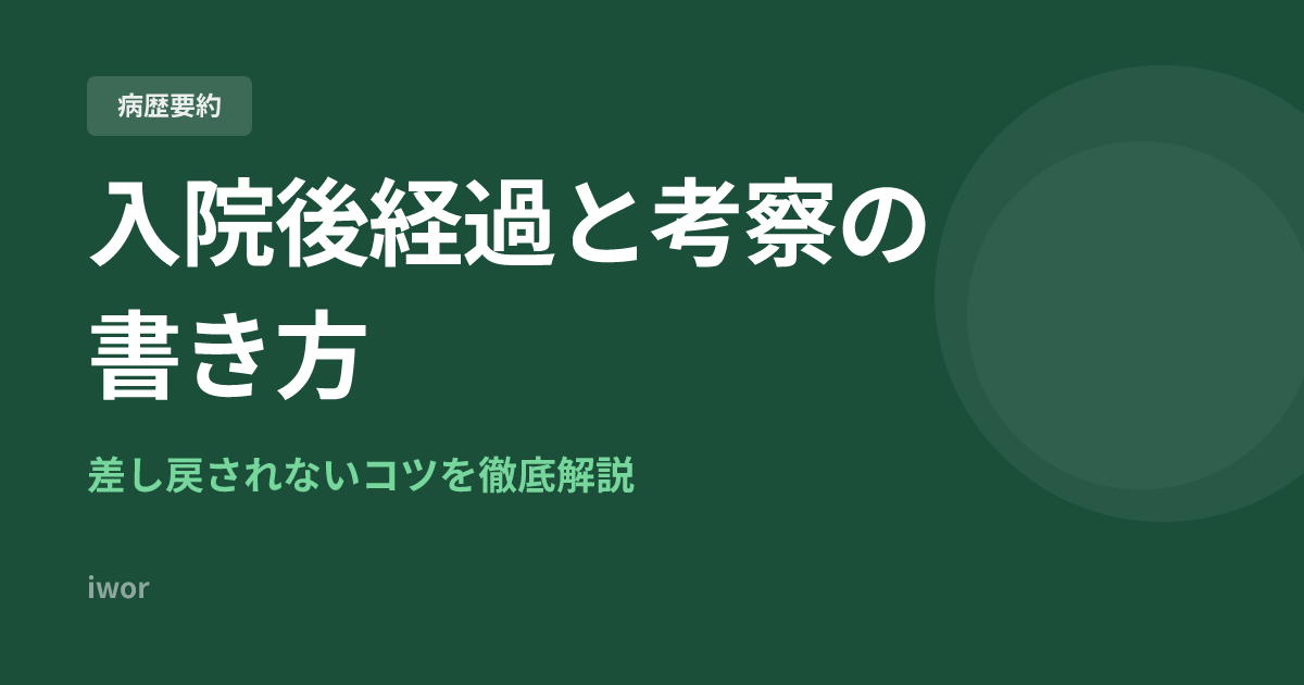 入院後経過と考察は、病歴要約の中で最もボリュームが大きく、差し戻しの原因にもなりやすいセクションです。