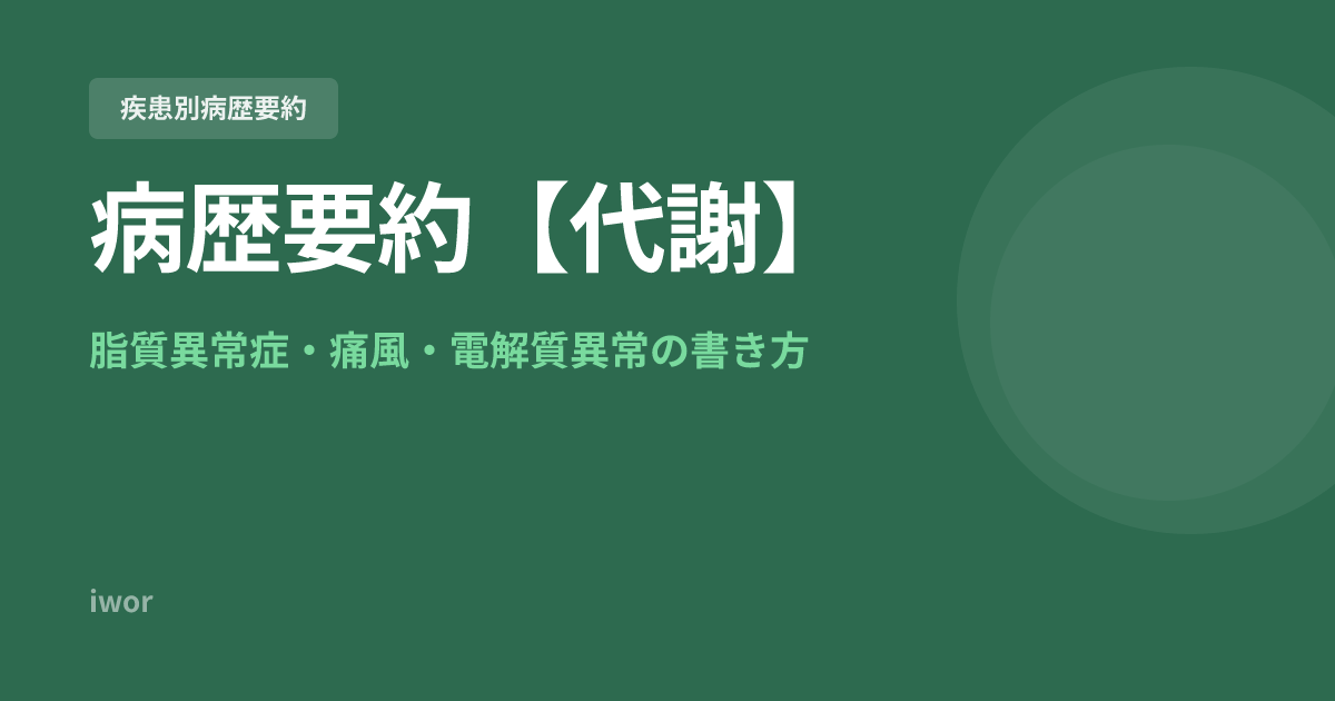 J-OSLER病歴要約【代謝】脂質異常症・痛風・電解質異常の書き方