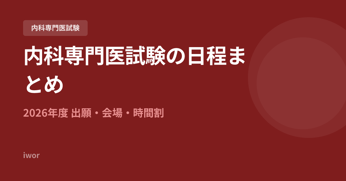 2026年度 第6回内科専門医試験の日程は5月31日。出願期間・会場・時間割・持ち物・合格率まで完全網羅。出願を忘れず合格を勝ち取るためのスケジュール管理術も解説。