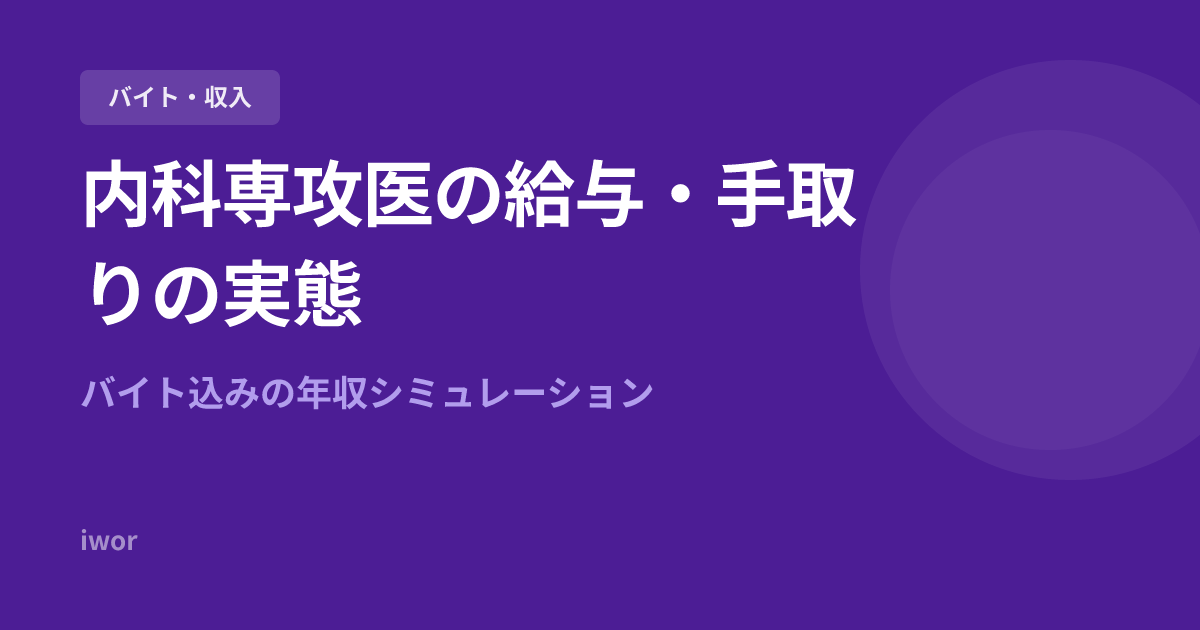 内科専攻医の給与・手取り・年収の実態を解説。基本給・当直手当・バイト収入を含めた年収シミュレーション、手取りを増やすためのポイントも紹介。