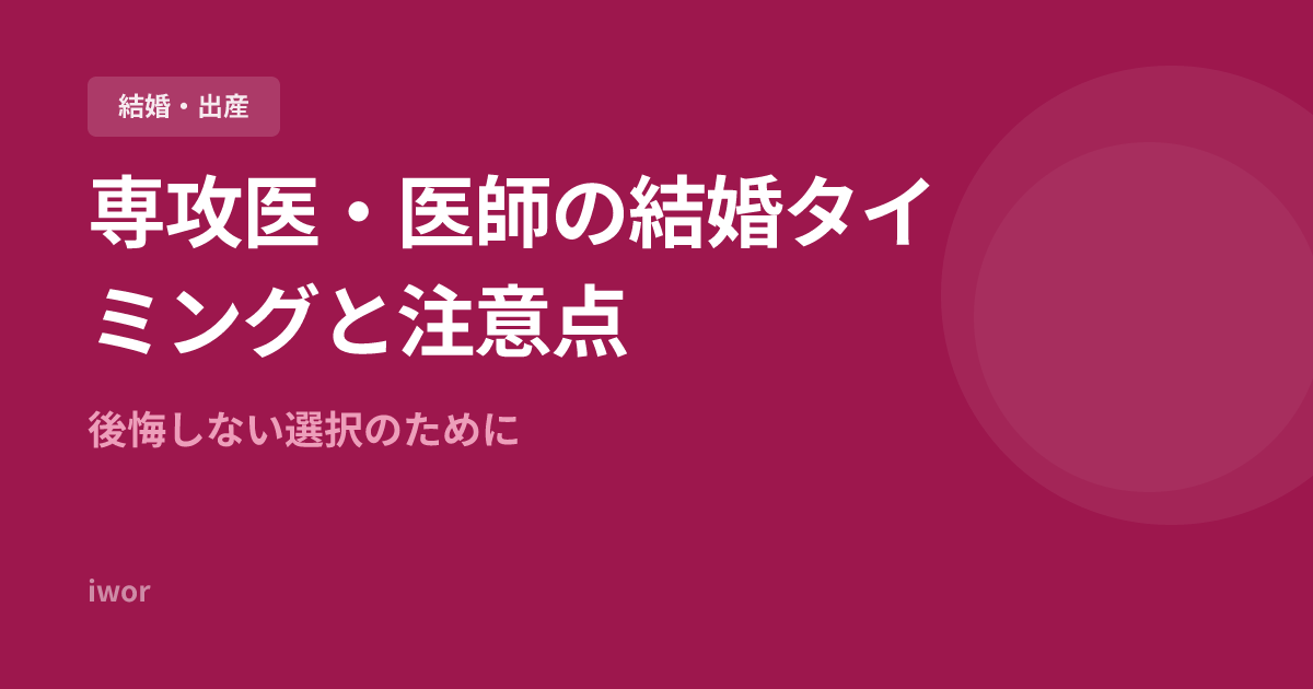 結婚後の生活設計については専攻医・医師の結婚生活完全ガイド、睡眠管理の重要性の記事もあわせてご覧ください。